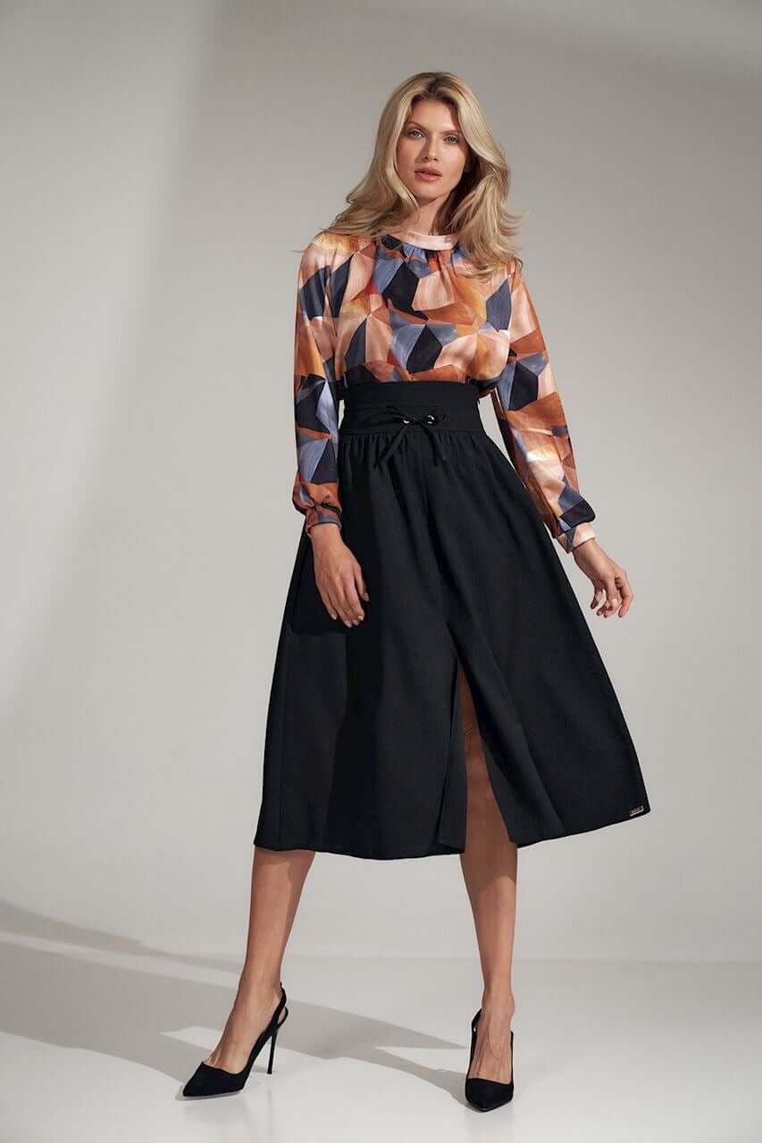High Waist Skirt with drawstrings on the band waistline. A long slit is visible in the middle, making it eye-catching.