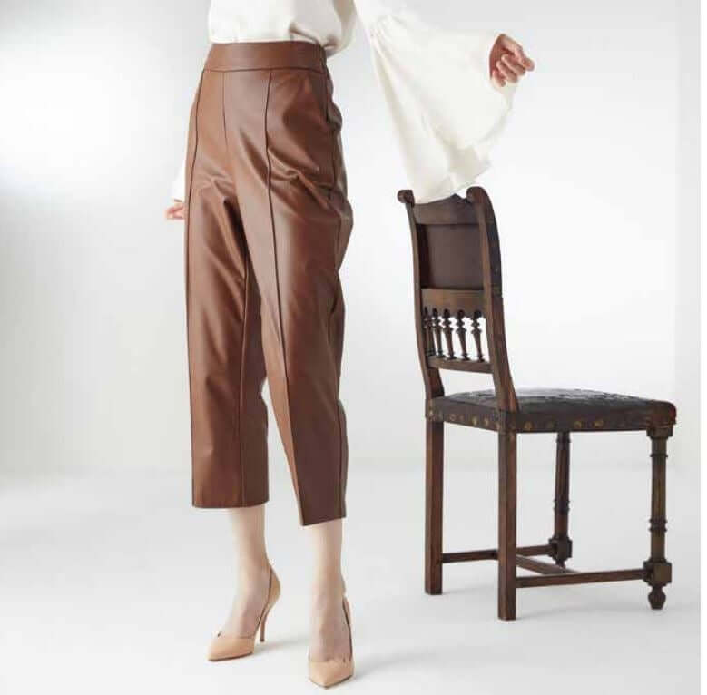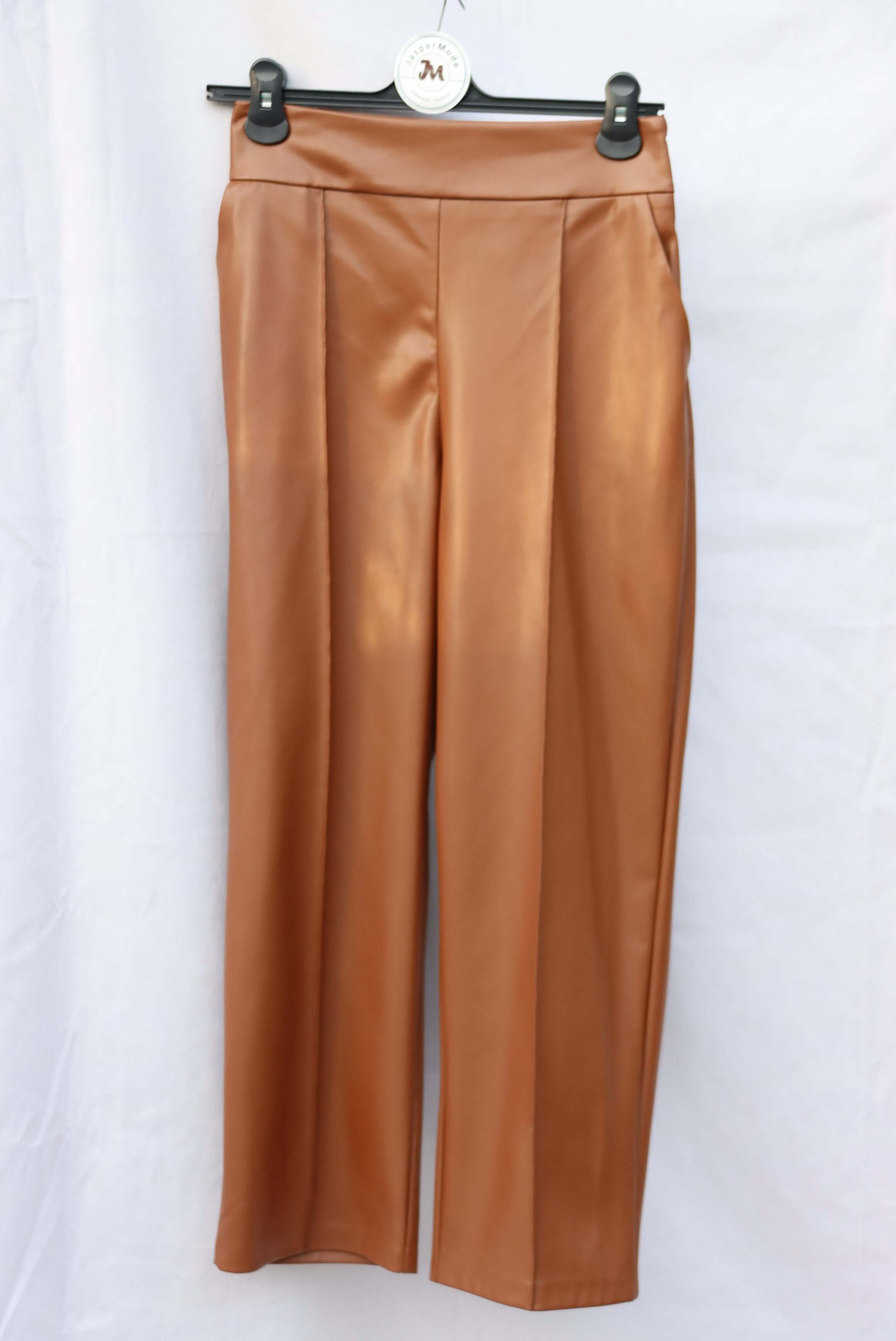 High WAIST Faux Leather Culotte Trousers. Wide legs with a band at the entire waistline.